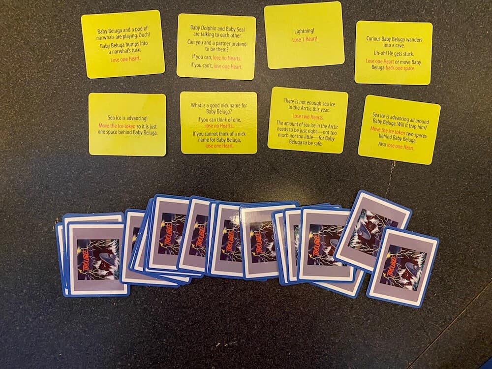 This pre-used game includes 1 Gameboard, 30 Heart Cards, 30 Trouble Cards, 1 Spinner, 3 (of 4) Wooden Friend Tokens, 1 Ice Token, 1 Wooden Baby Beluga Token, and Game Guide. This game can be used by occupational therapists, speech language pathologists, and special education teachers.