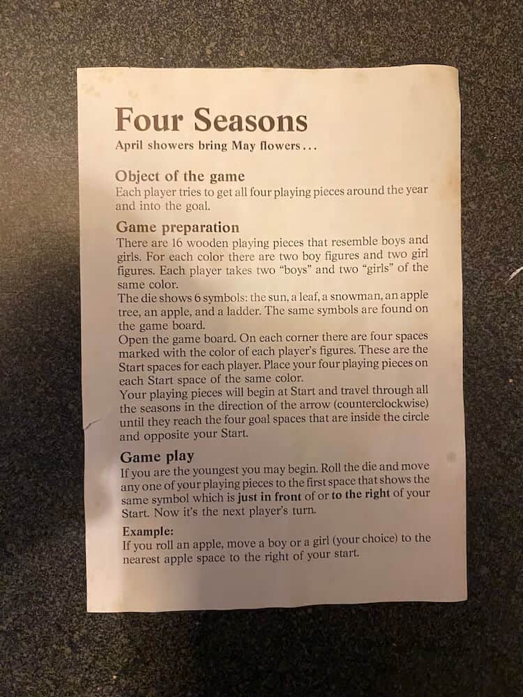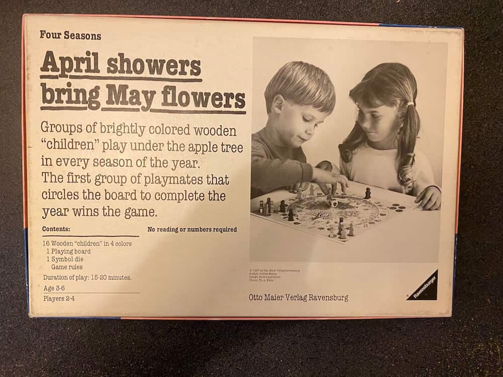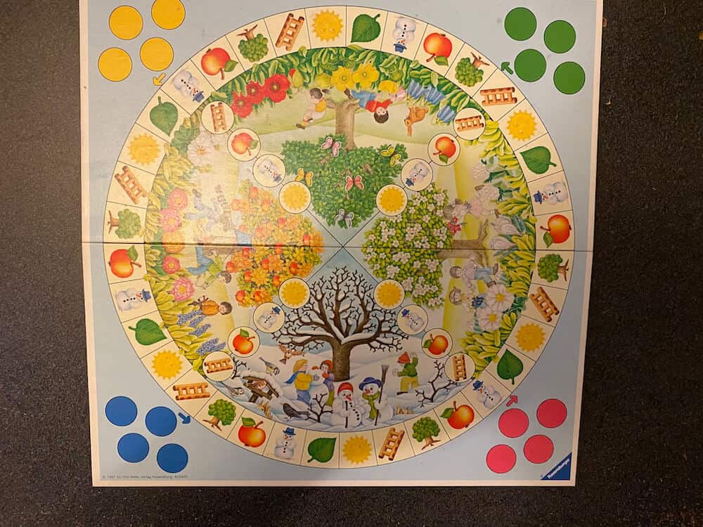 Play under the apple tree in every season of the year. The first group that circles the board to complete the year wins the game. Another great game from Ravensburger. This pre-used game includes 1 Gameboard, 16 Wooden Childen Tokens (4 each of green, yellow, red, and blue), 1 Symbol Die, and instructions. This game can be used by occupational therapists, speech language pathologists, and special education teachers.