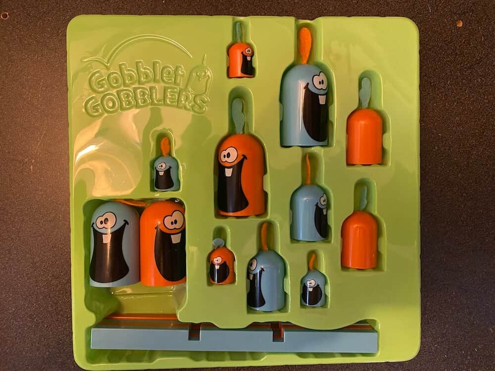 What sets Gobblet Gobblers apart is its memory mechanic: you must remember which pieces are hidden beneath others, because lifting the wrong one might reveal your opponent’s victory line. It’s a battle of foresight, bluffing, and board control. This game is ideal for developing focus and attention, memory, problem solving skills, and visual perception. This pre-used game includes 1 Gameboard (2 Plastic Sticks forming a 3×3 grid), 12 Plastic Gobblers, and instructions. This game can be used by occupational therapists, speech language pathologists, and special education teachers.