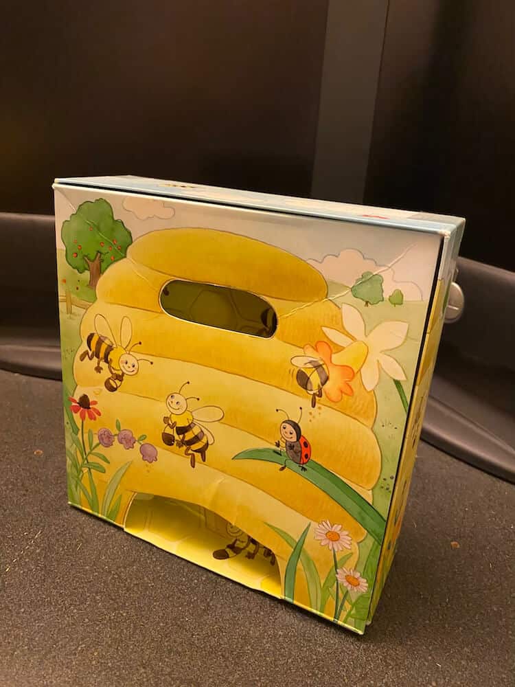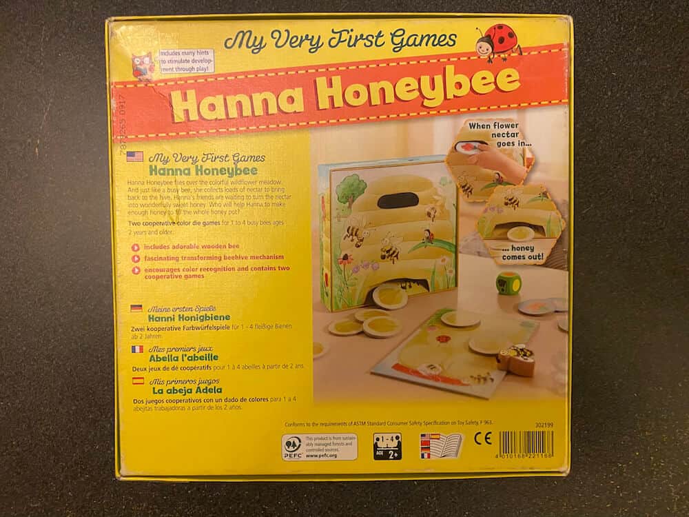 Help Hanna the Honeybee collect nectar from flowers to make honey! In Hanna Honeybee, you will have match colours on the dice to flowers and fly the flower and Hanna to the beehive to make honey for your honey pot! See if you can make enough honey to fill your honey jar before all the flowers are gone! The pieces from this game can be used for pretend play as well. Helps develop fine-motor skills, color and shape recognition, hand-eye coordination, and social/emotional development. This pre-used game includes 1 Hanna Honeybee, 10 Flower Tiles, 1 Beehive (insert & box bottom), 1 Honey Pot Board, 1 Custom Wooden Die, and instructions (in English, Spanish, French, and German). This game can be used by occupational therapists, speech language pathologists, and special education teachers.