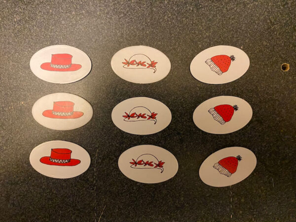 This pre-used game includes 1 Gameboard, 43 (of 44) Hat Tokens, 4 Characters and Stands, 40 Word Ending Cards to create over 160 words, spinner, instructions with complete word list. This game can be used by occupational therapists, speech language pathologists, and special education teachers.