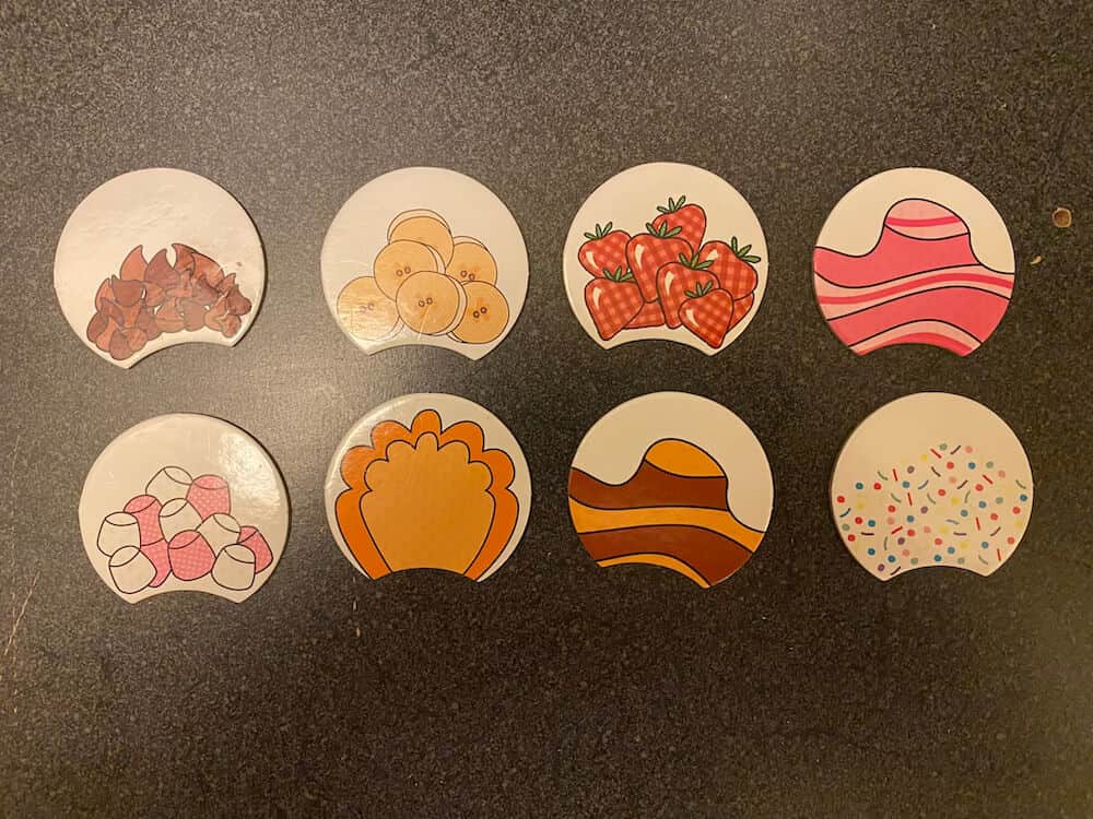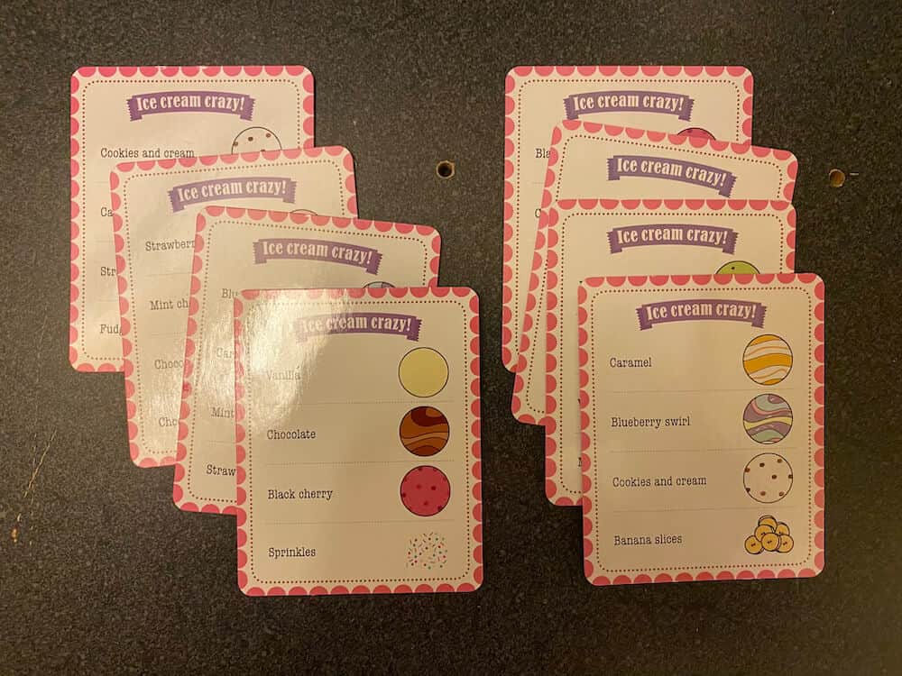 Follow your order card and be the first to make an awesome ice-cream cone! But bewaren- if the sun comes out, your ice cream will melt. This game encourages communication, cooperation, and friendly competition. Playing this activity teaches colors and shapes, provides practice in matching and sequencing, and promotes observation and memory skills. This pre-used game includes 8 Ice Cream Cones, 24 Ice Cream Scoops, 8 Toppings, 8 Order Cards, 10 Suns, and instructions. This game can be used by occupational therapists, speech language pathologists, and special education teachers.