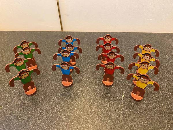 In this fast and funny action game, you’re trying to be the first player to get all four of your monkeys into the tree and win a bunch of bananas. Great physical activity to get those fingers working. Can be incorporated into therapy as kids must complete their target sound before launching their monkey. When all the monkeys of one color are in the tree, the round ends. The player with four monkeys in the tree wins all the bananas in the “Banana Pile.” This pre-used game includes 1 Tree (2 brown trunk halves, put together and add the 2 Green Rings to make the leaf canopy), 16 Monkeys (4 Monkeys each of Red, Green, Blue, and Yellow), 16 Banana cards, 4 Catapults (1 each of Red, Green, Blue, and Yellow), and instructions. This game can be used by occupational therapists, speech language pathologists, and special education teachers.