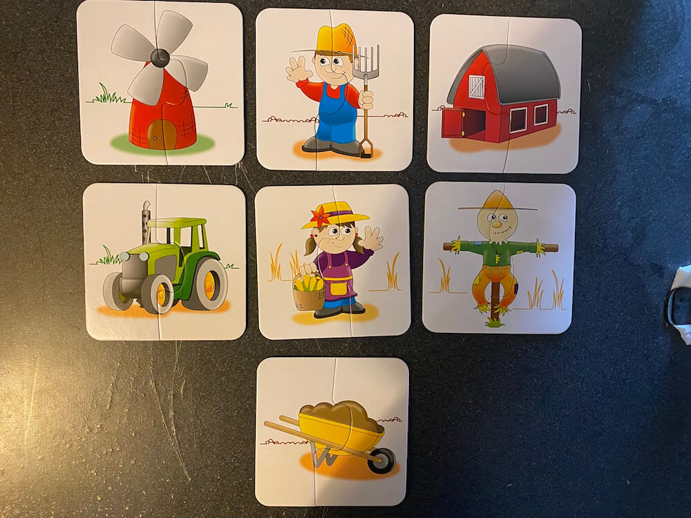 Using this game in therapy helps develop spatial awareness, visual recognition, and matching skills. Ideal for early childhood learners or anyone learning English as a second language. This pre-used game includes 15 2-piece Self-Correcting Puzzles. This game can be used by occupational therapists, speech language pathologists, and special education teachers.