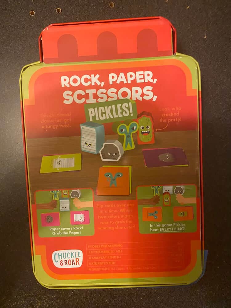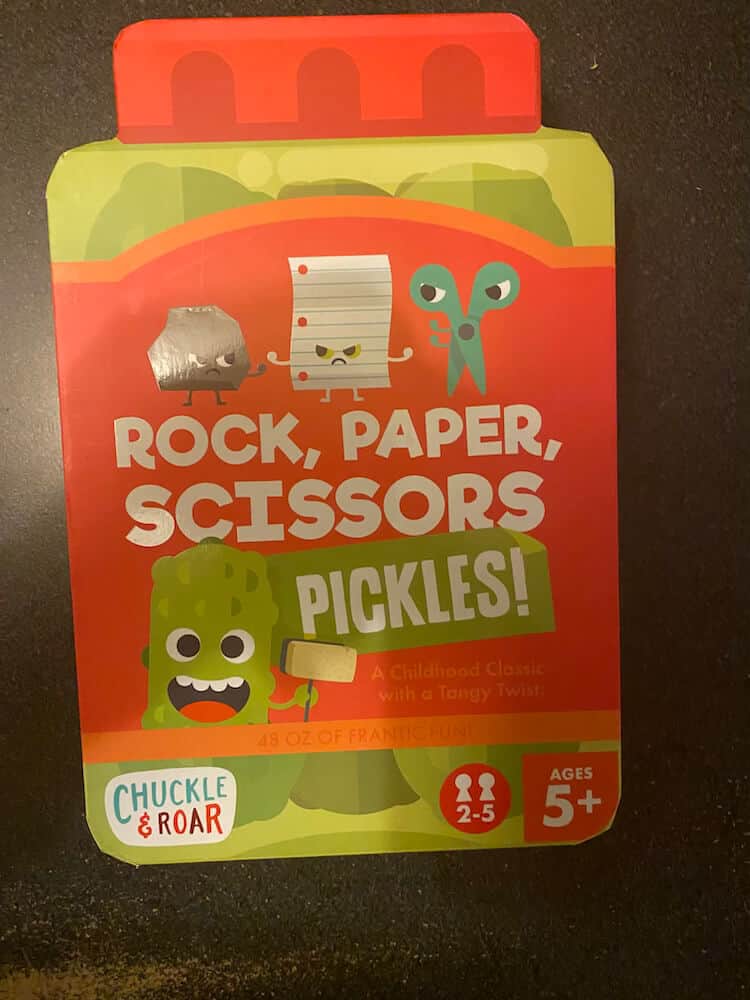 It’s classic rock-paper-scissors play, but in this game, the pickle trumps all. Win the most cards to take the crown – you’re kind of a big dill!