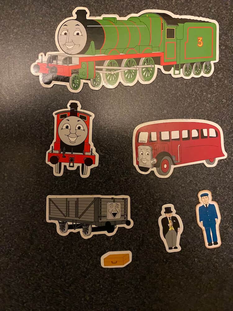 Enjoy playing and making up stories and scenes with Thomas the Tank Engine and his friends at the station. This pre-used activity includes the gameboard of the station and 14 (of 15) Magnets (Thomas, Henry, Percy, Mavis, James, Harvey, Bertie, Toby, 1 Boxcar, Sir Topham Hatt, 1 Conductor, 1 Rail Signal, 1 Fisherman in Rowboat, and 1 Suitcase). This activity can be used by occupational therapists, speech language pathologists, and special education teachers.