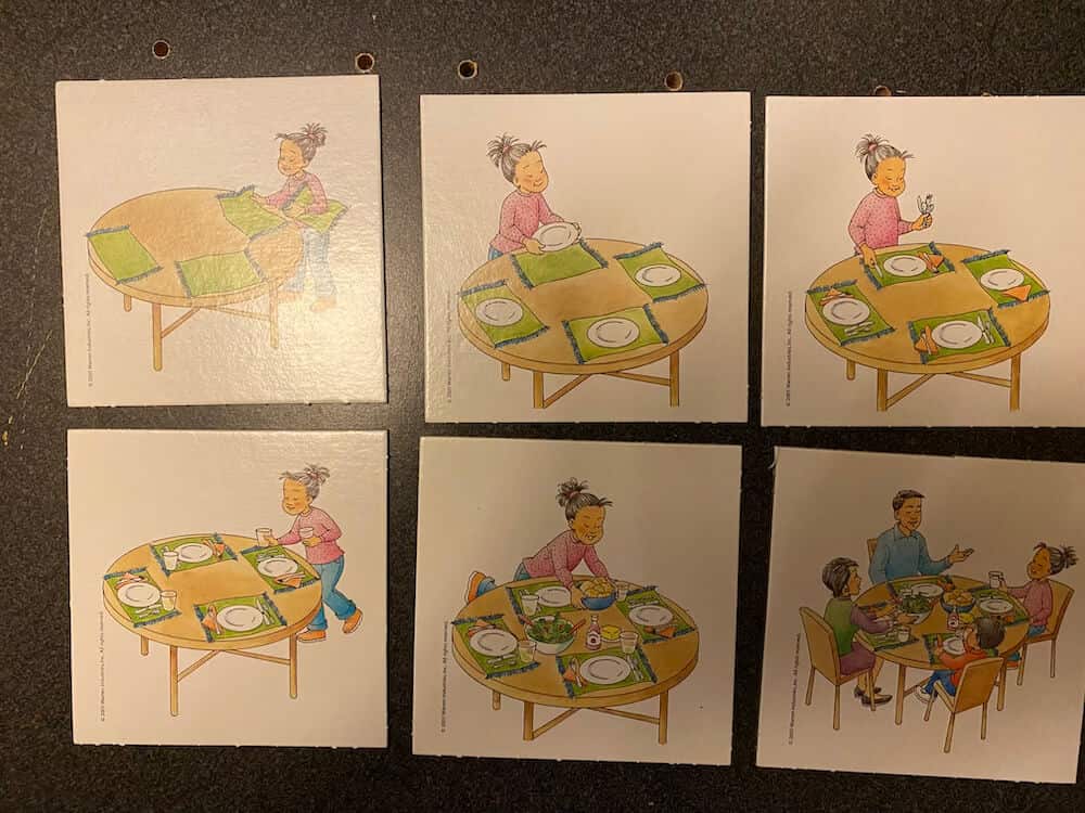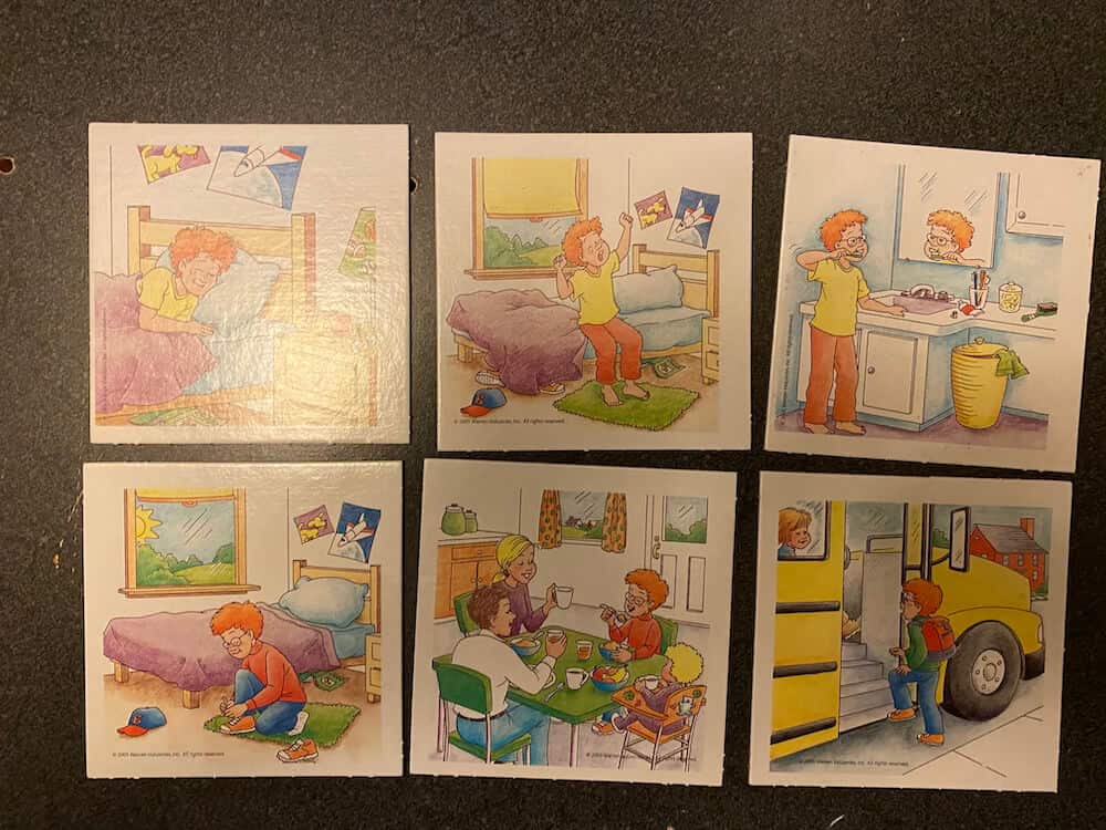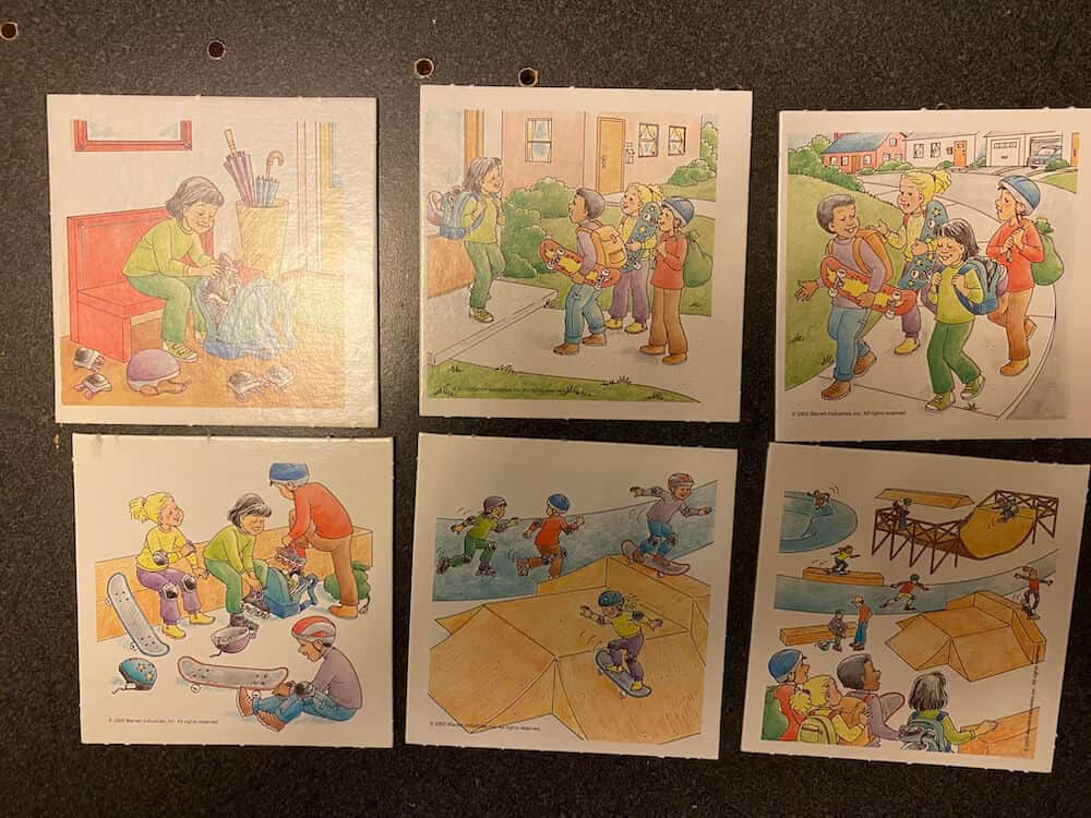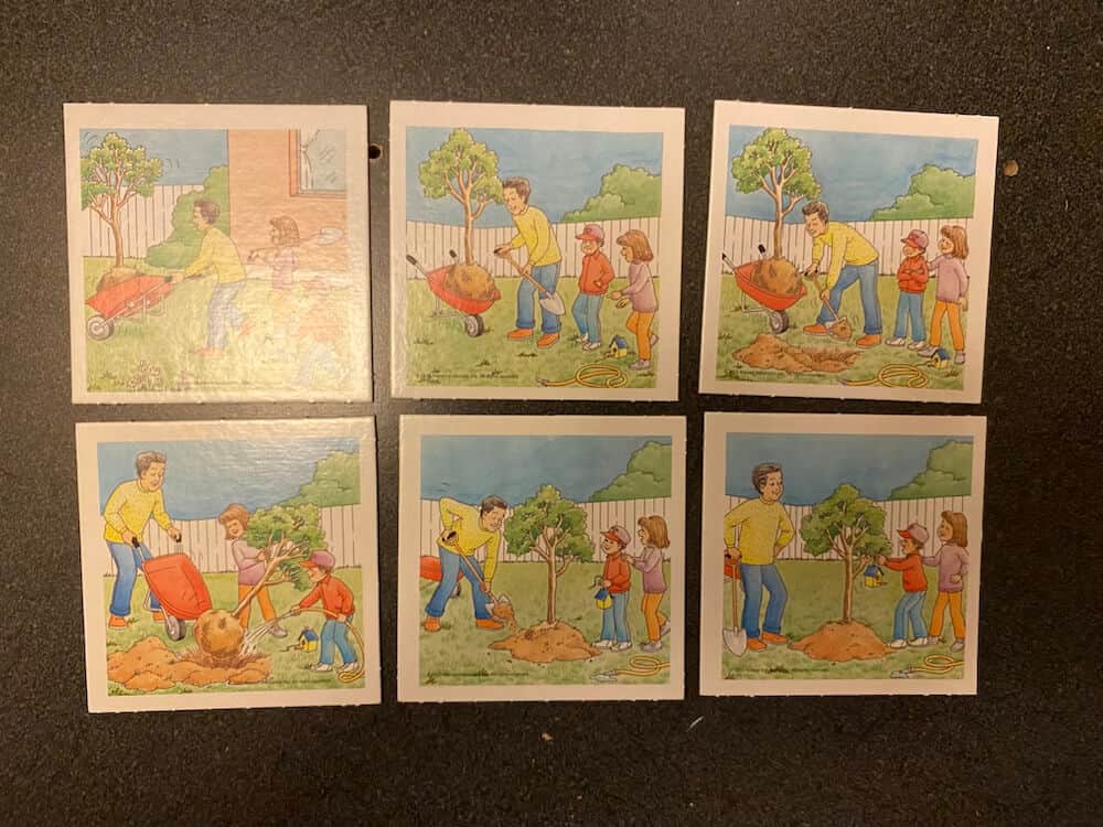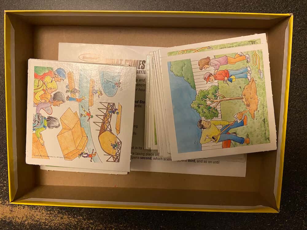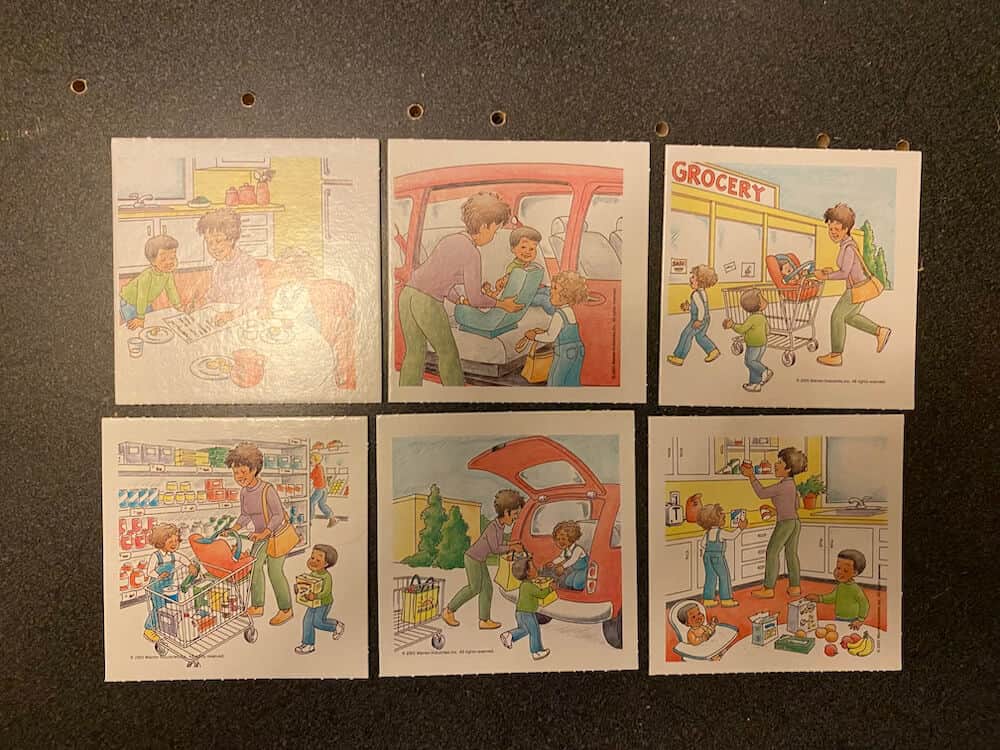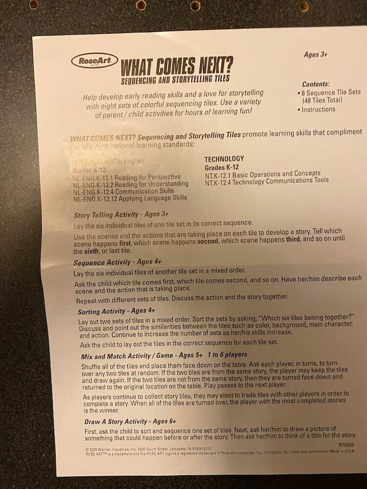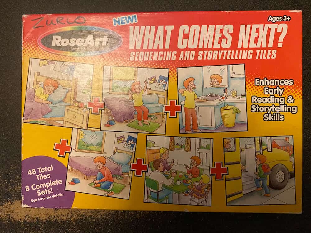 Help children develop early skills and a love for storytelling with 8 sets of colorful sequencing tiles. Using sequencing tiles help children realize that stories have a beginning, a middle, and an end. Each set contains 6 tiles. This pre-used game contains 48 tiles, sets of 6 tiles that depict a story, and instructions. This game can be used by occupational therapists, speech language pathologists, and special education teachers.