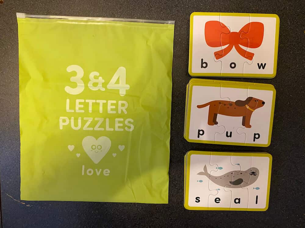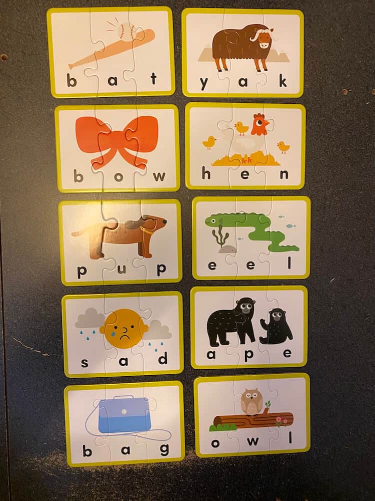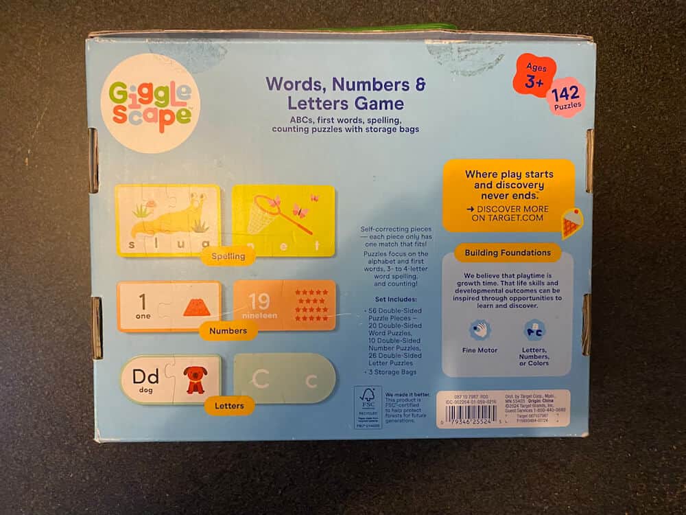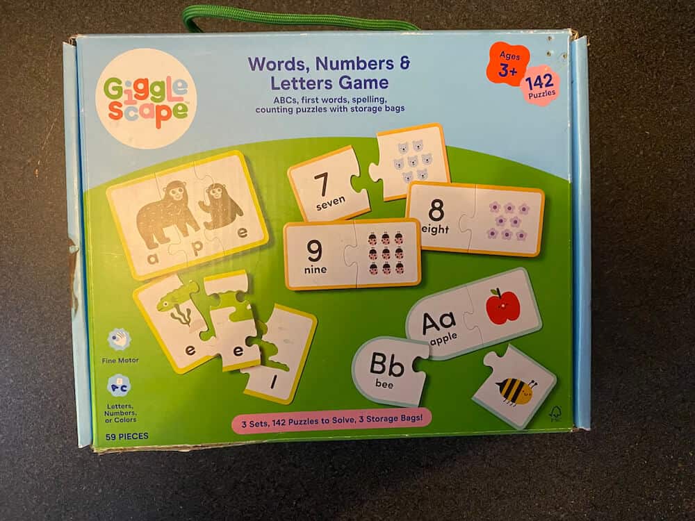 The Words, Numbers & Letters Game from Gigglescape helps kids learn their letters and numbers. Made from cardstock, this game includes three sets of colorful puzzles that focus on the alphabet and first words, 3- to 4-letter word spelling, and counting. Designed so that each piece only has one match that fits, these 56 double-sided pieces and 142 total puzzles will challenge their fine motor skills. This pre-used activity includes 56 double sided puzzle pieces: 20 double sided word puzzle pieces, 10 double sided number puzzle pieces, and 26 double sided letter puzzle pieces. This activity can be used by occupational therapists, speech language pathologists, and special education teachers.